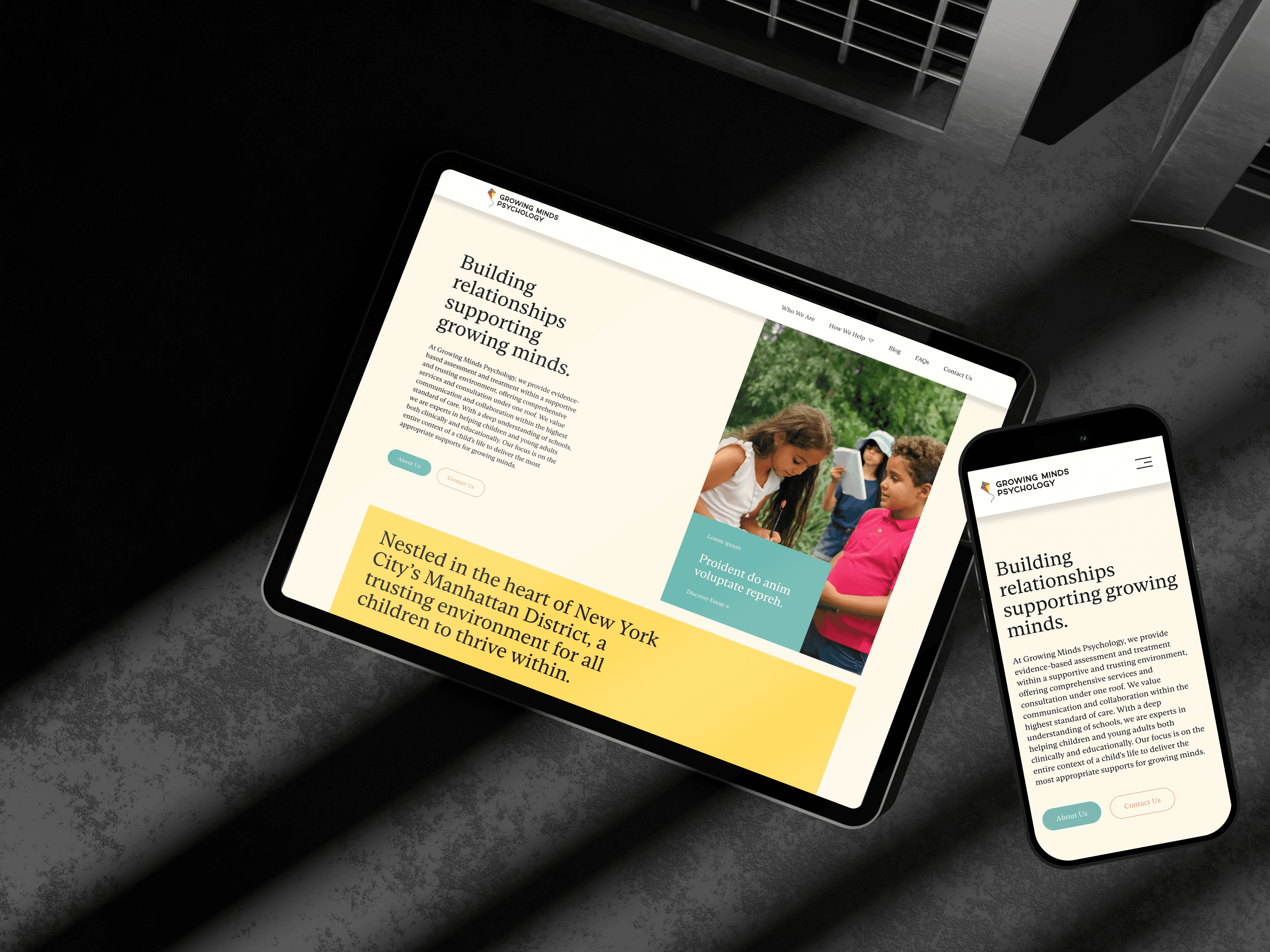 Growing Minds Psychology is a bright-spot in the mental-health landscape, founded in 2020 by Carly and Matthew to serve children, teens, and young adults with evidence-based care in a supportive, trusting environment. As their team and services expanded, they realized their dated website no longer reflected the warmth and expertise they bring to every session. They needed a brand refresh that would help them reach more families, feel approachable online, and give their growing practice a cohesive look that matched their values. That's when they turned to Arc & Atlas.