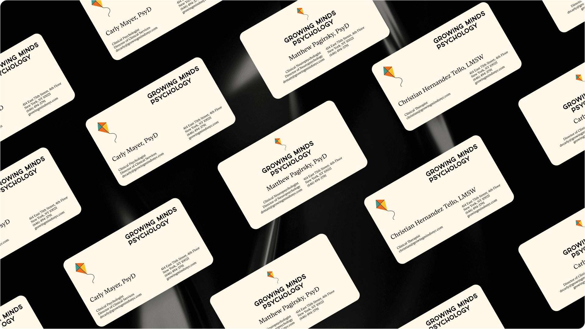 We kicked things off with a brand-strategy session where Carly and Matthew shared their vision and values. From there, we created a moodboard of fonts, colors, and logo concepts that captured the practice's vibe. During a collaborative call, the team gave real-time feedback, and we narrowed down to the final branding and typography. With the brand foundation set, we designed and launched a fully accessible website, plus social-media graphics and business cards that carry the same playful, friendly tone.